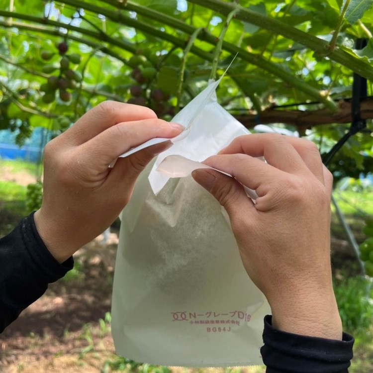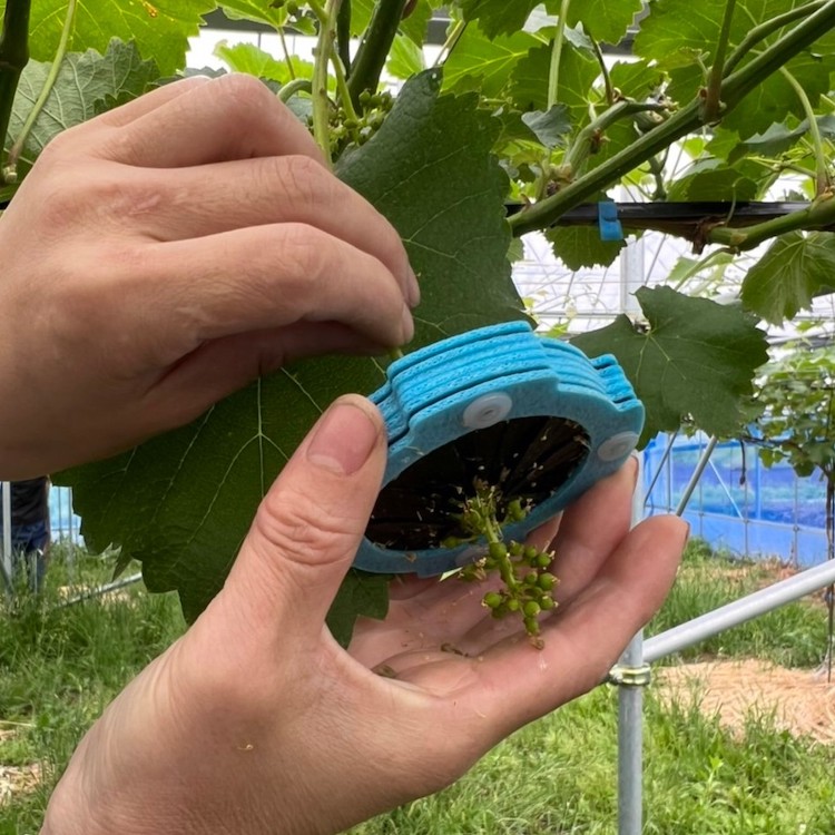 種なしぶどうにするための処理を行います。