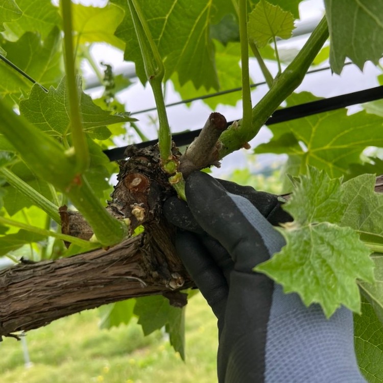 ぶどうをつけたい節に傷を入れます。
